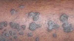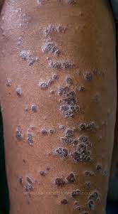 Lichen planus in darker-skinned individuals often appears as purplish, gray, or dark brown flat-topped bumps, which can be more pronounced due to the skin’s natural pigmentation. The condition may lead to long-lasting hyperpigmentation, even after the lesions resolve. Treatment options include topical corticosteroids, oral medications like corticosteroids or retinoids, and light therapy to control symptoms and minimize pigmentation changes.