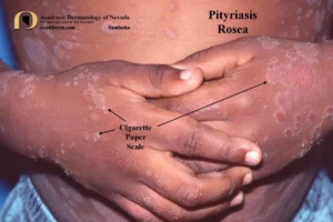 - Academic Dermatology of Nevada. Pityriasis-rosea-it-starts-with-a-herald-patch. 2019; Available at: https://acadderm.com/pityriasis-rosea-it-starts-with-a-herald-patch/. Accessed -02-17, 2024.
